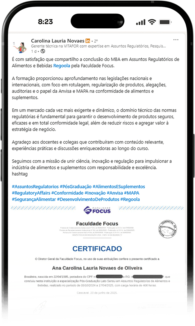 Fundador do Regoola, referência nacional em Assuntos Regulatórios e Pesquisa para projetos regulatórios e segurança de alimentos.